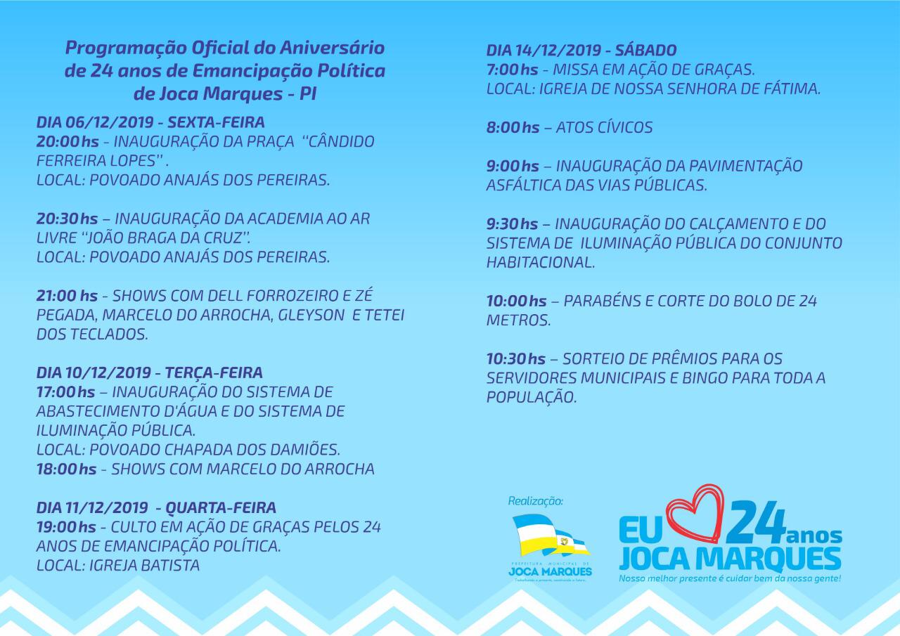 PROGRAMAÇÃO DE ANIVERSARIO DA CIDADE DE JOCA MARQUES-PI
